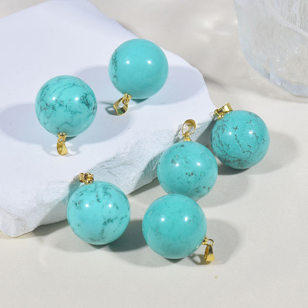 Cross-border Natural Turquoise Round Bead Pendant Single Pendant Women's Large Single Bead 20mm DIY Necklace Pendant Pendant Accessories