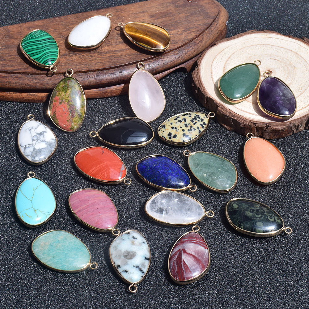 Cross-Border Hot Selling Natural Crystal Lapis Lazuli Gold Edge Pendant Single Pendant DIY Bracelet Necklace Earrings Jewelry Accessories