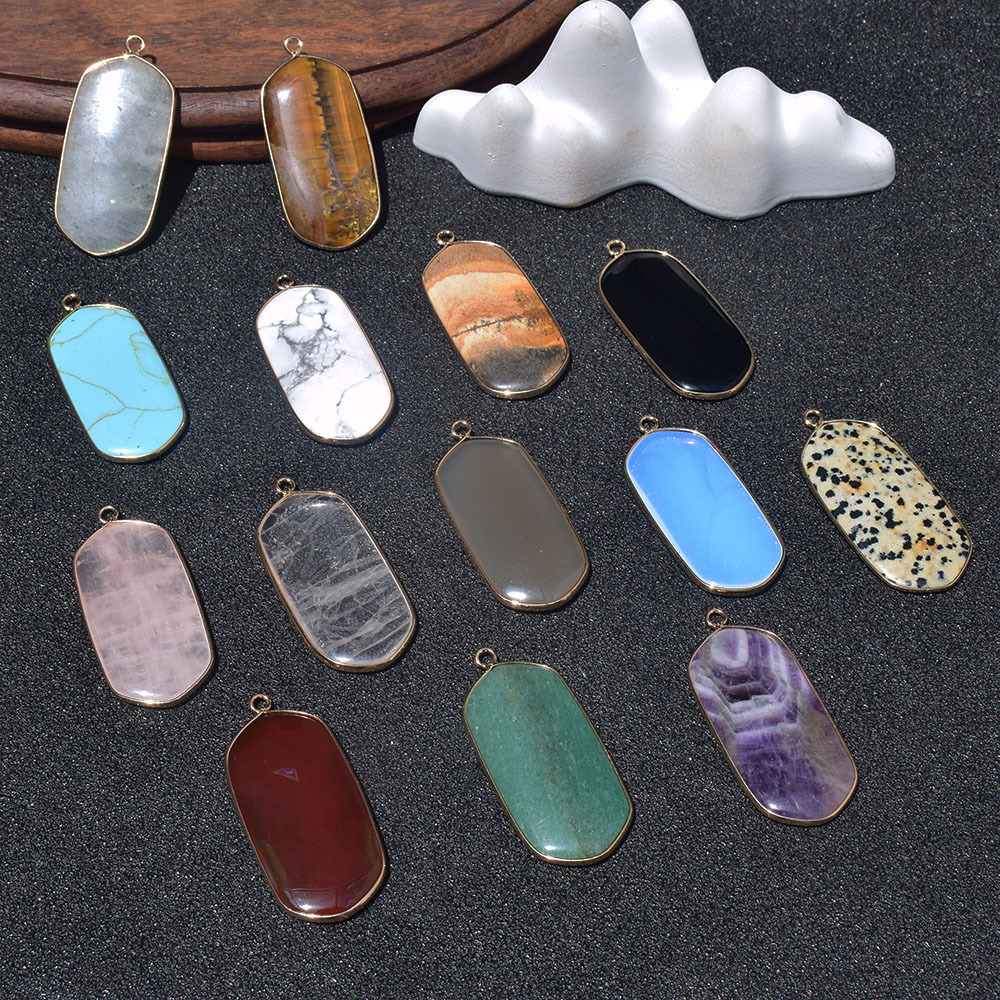 Natural Crystal Agate Pendant Gold Edge Rectangular Single Pendant Women's Necklace Accessories Handmade DIY Jewelry Earrings Pendant