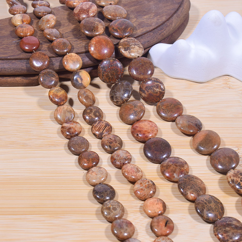 Cross-border natural chrysanthemum coral jade fossil flat round beads diy beaded necklace bracelet earrings jewelry accessories