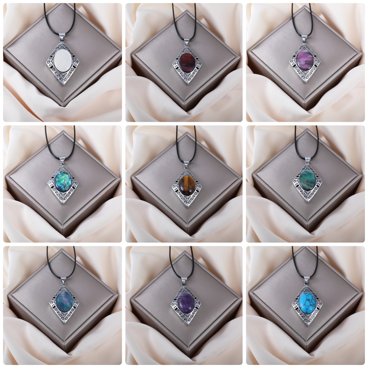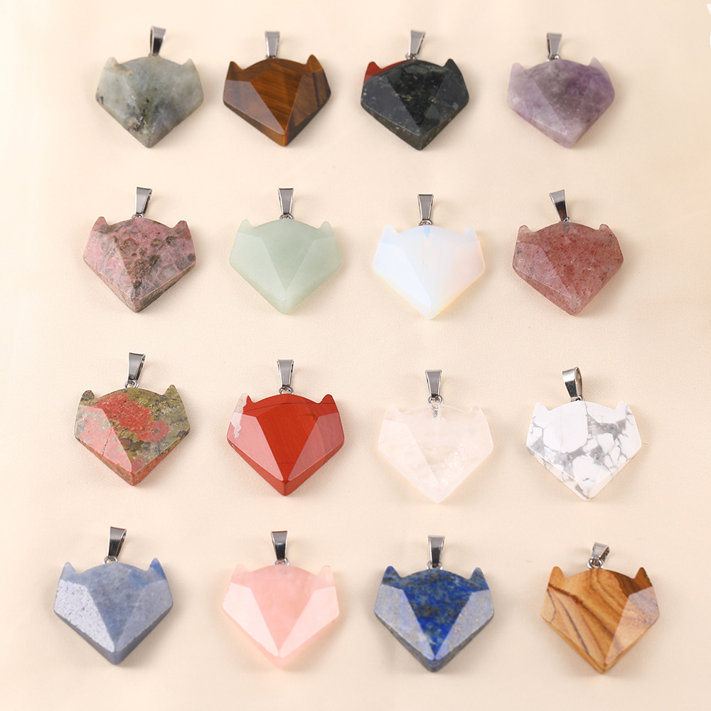 Cross-border explosions Amazon natural stone necklace pendant crystal agate polygon semi-precious stone cut pendant wholesale