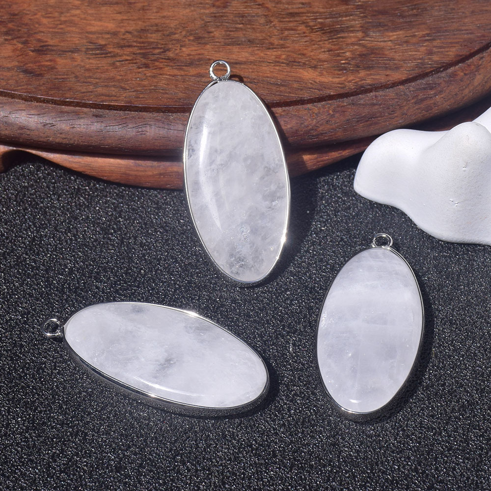 Natural White Crystal Pendant Single Pendant Women's Necklace Accessories Oval Handmade DIY Jewelry Earrings Bracelet Pendant Accessories