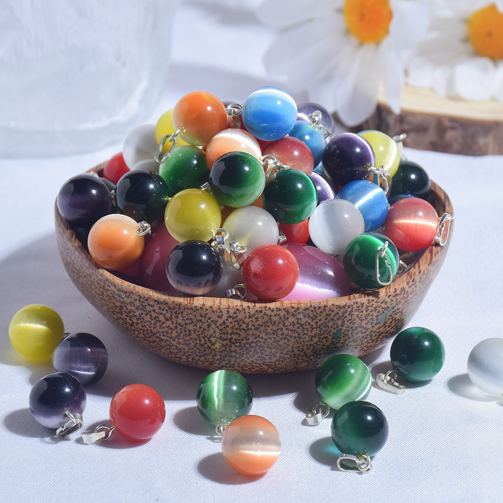 New Colorful Cat's Eye Stone Small Round Bead Pendant Single Pendant 12mm Beads DIY Necklace Earring Accessories Wholesale