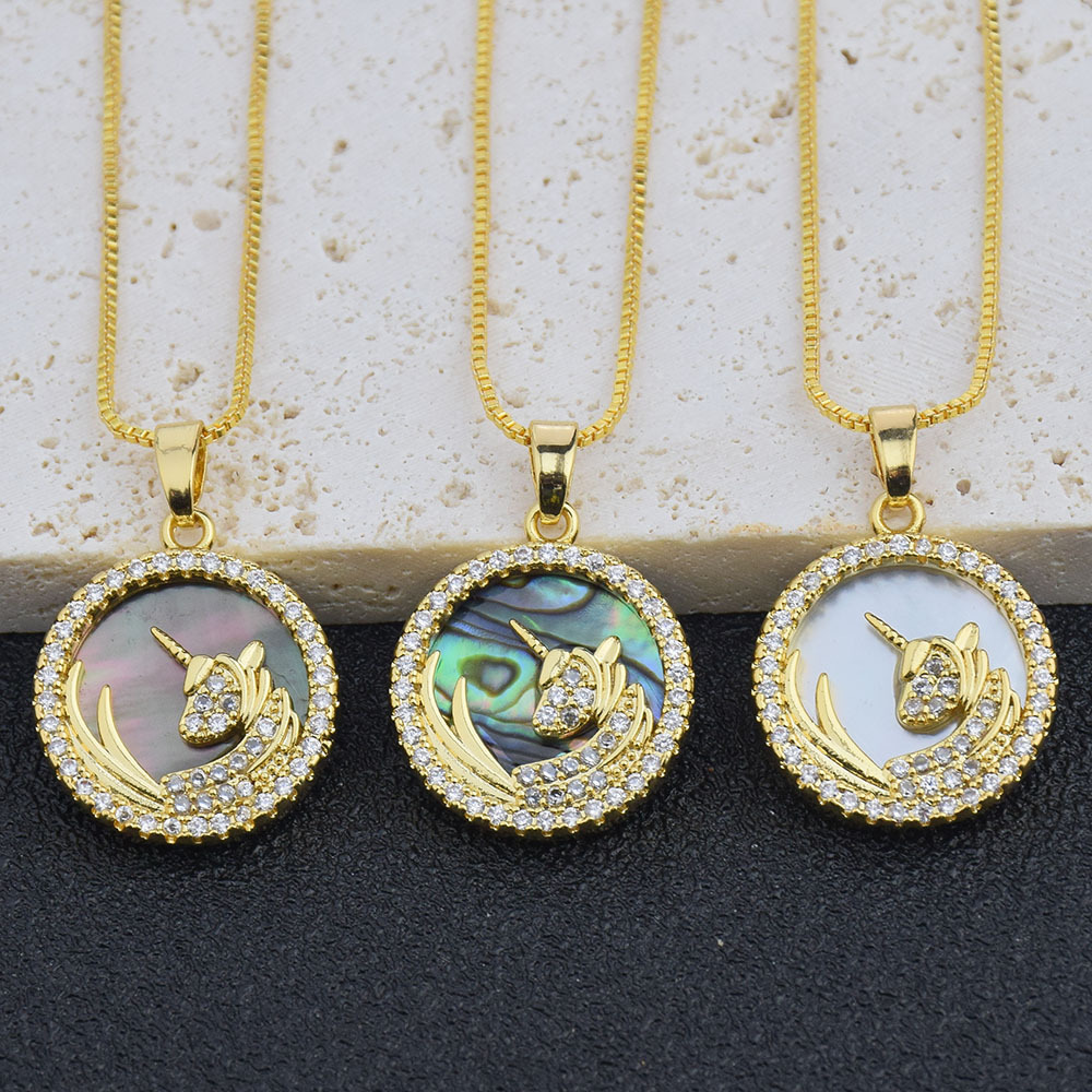 New Arrival Brick Unicorn Necklace Pendant Women's Light Luxury All-match Bowel Pearl Shells Pendant DIY Jewelry Accessories