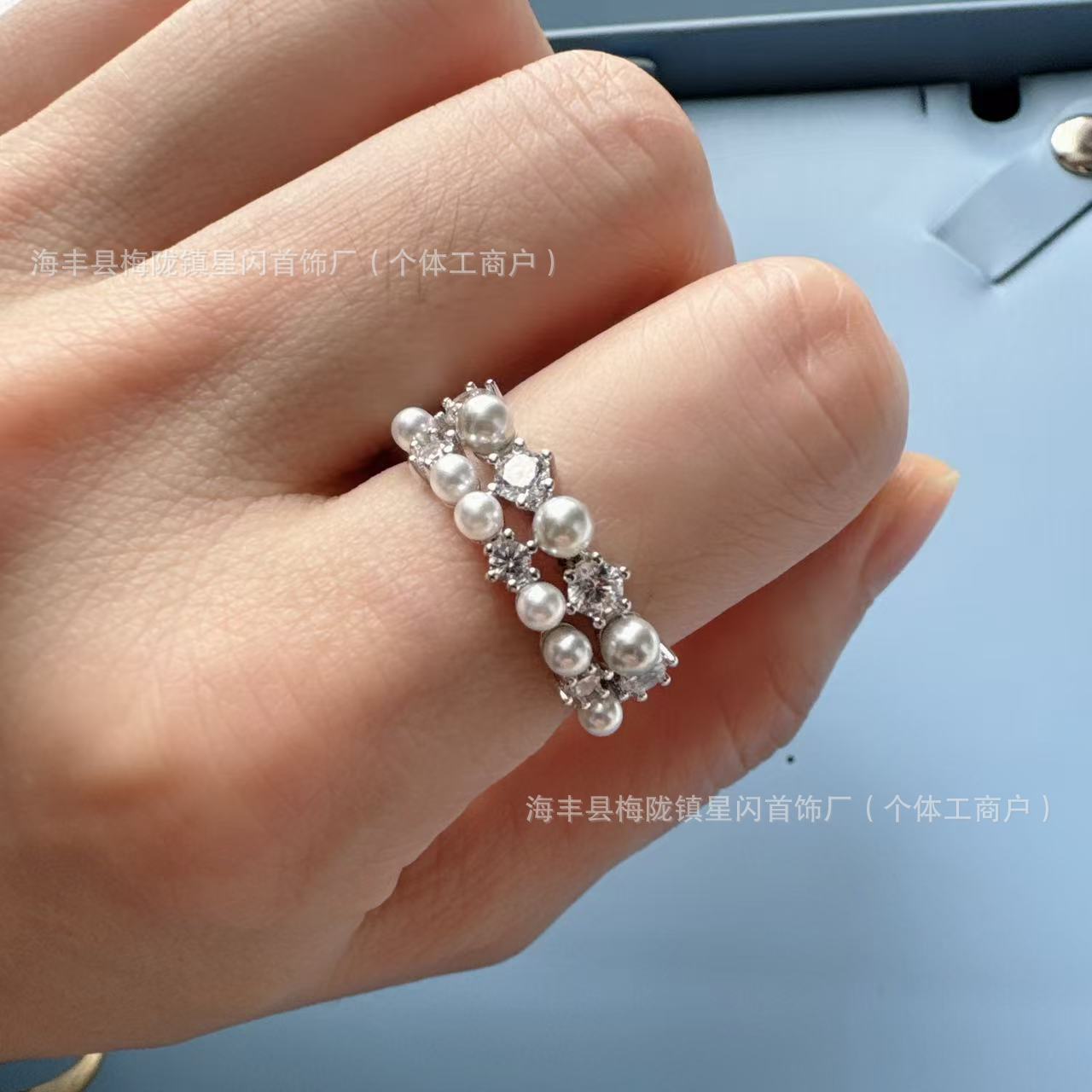 HEFANG What Bubble Double Layer Ring Fashion All-match Light Luxury Silver Grey Pearl Ring Female Birthday Gift