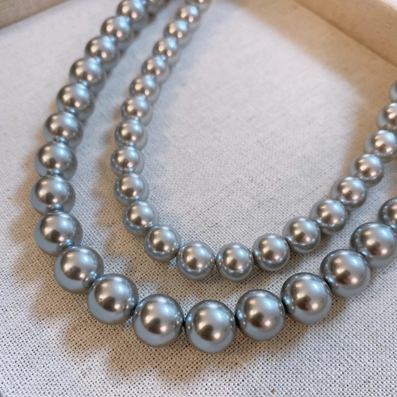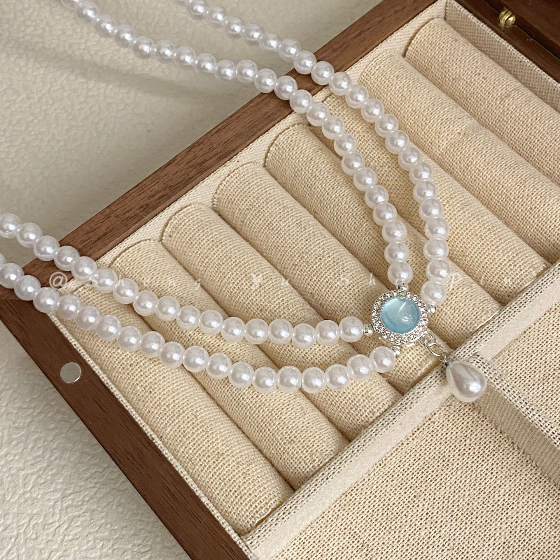 Double Layer Imitation Pearl Sea Blue Pendant Palace Style Pearl Necklace Niche Exquisite Light Luxury Design Sense