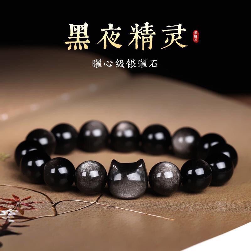 Natural Gold Obsidian Faceless Cat Head Bracelet for Men and Women, Fashionable Accessible Luxury Ins Style Bracelet Jewelry