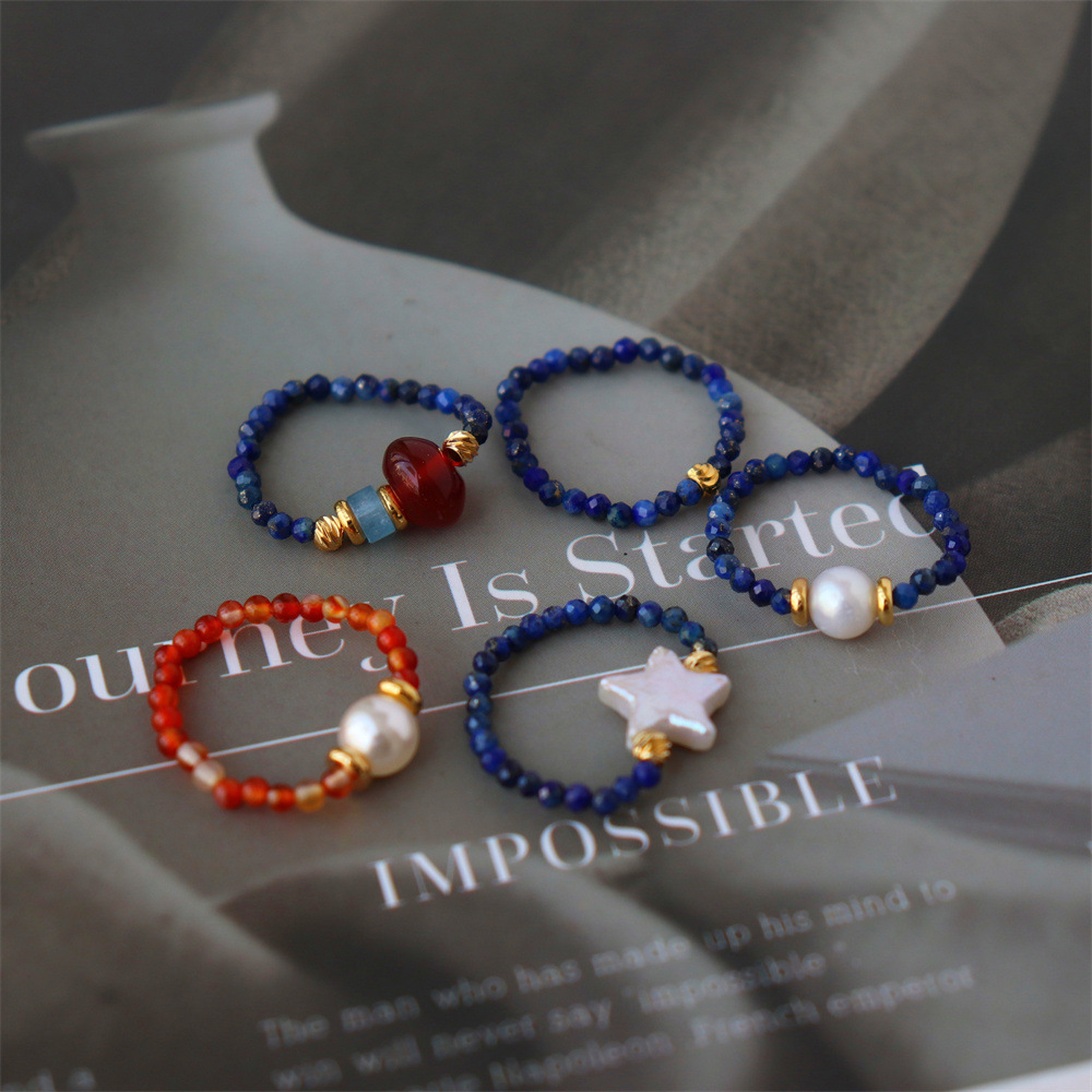New Chinese Style Vintage Stretch Lapis Lapis Pearl Ring Natural Star Pearl Agate Personality Trend Wholesale Women
