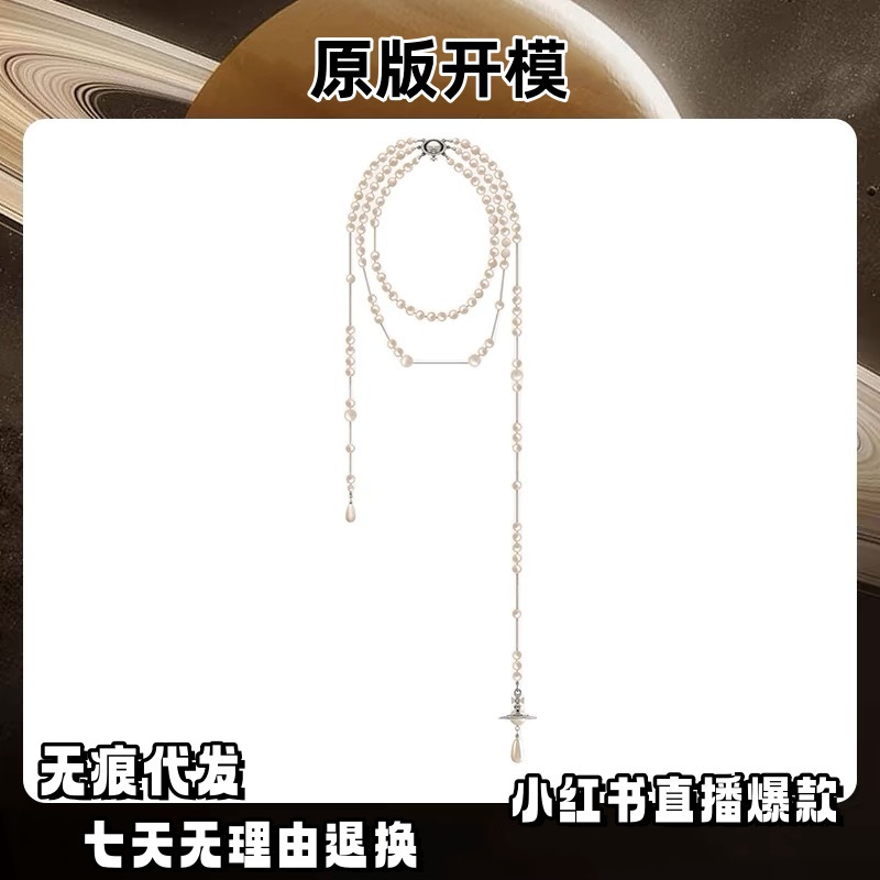 High Version of the Queen Mother of the West Saturn Broken Pearl Necklace Three-Layer Sweater Chain Women's Pair of Wedding Beautiful Matching and Easiest for Match
