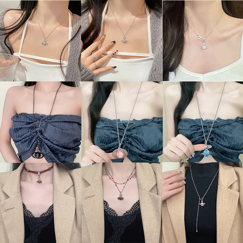 Queen Mother 3D Saturn Pendant Necklace Cross-Border Planet Large Ufo Clavicle Chain Fashionable Versatile Necklace