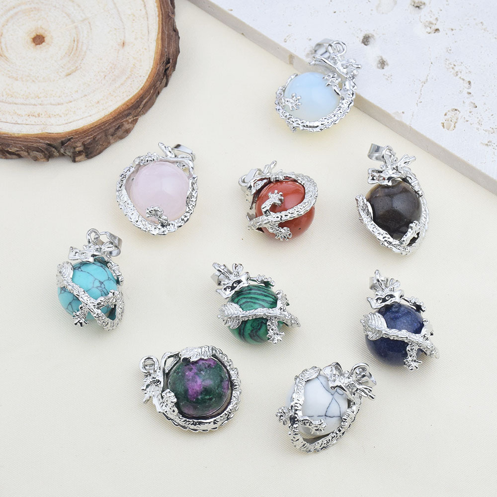 Natural stone crystal dragon ball pendant single pendant women's gem pendant cross-border diy accessories original stone necklace pendant wholesale