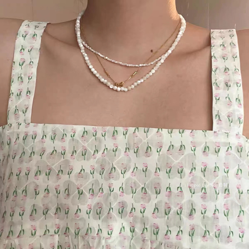 Carefully Selected K-Style Ins Cool Style Versatile Stacked Clavicle Chain Retro Elegant White Moonlight Shell Beaded Necklace X31