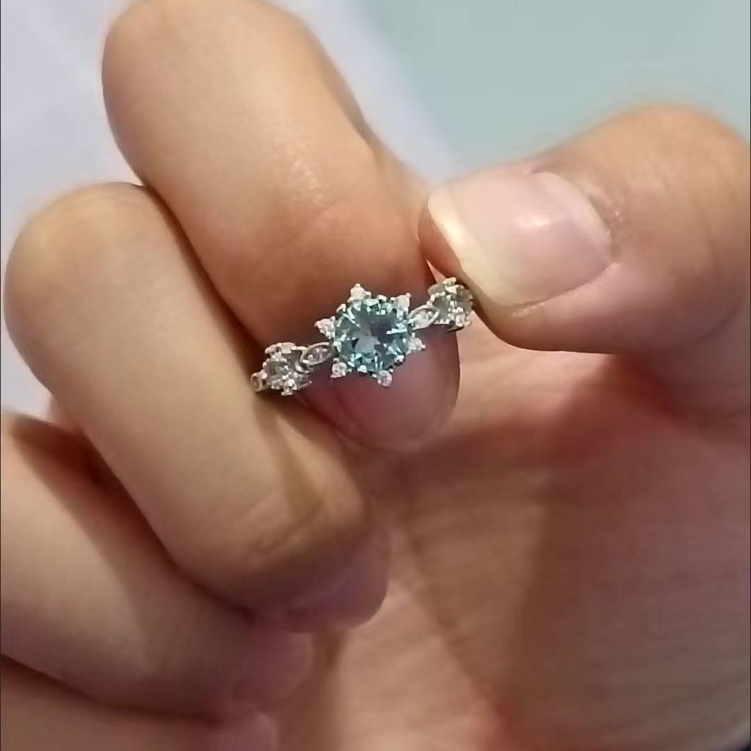 Brazilian Imitation Natural Santa Maria Aquamarine Loose Stone Inlaid Silver-Plated Zircon Ring Women's Jewelry Gift
