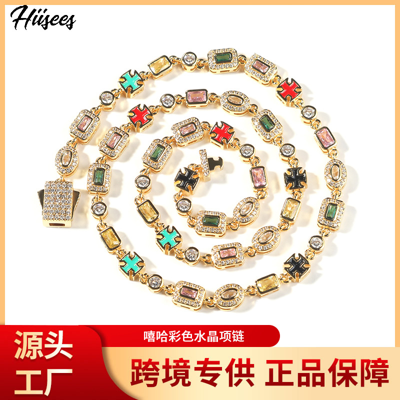 Cross-Border Hip-Hop New 6mm Colorful Gemstone Necklace with Diamonds, Trendy Unisex Niche Fashion Jewelry Wholesale