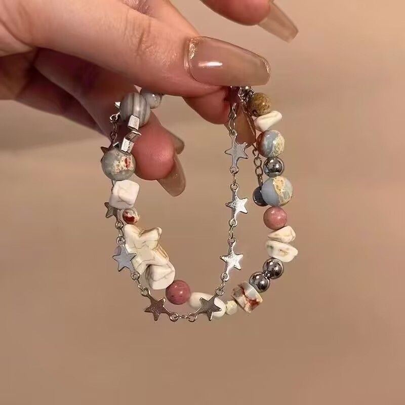 Dopamine Explosive Natural Stone Neptune Bracelet Instagram Women's Light Luxury Niche Design Double-Layer Star Cosmic Bracelet
