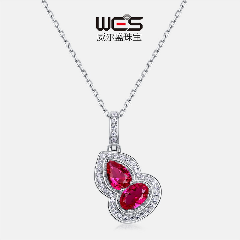 New Chinese Style Cultivated Red Treasure Gourd Necklace Women's S925 Silver Inlay Cultivated Color Treasure Full Diamond Clavicle Chain Light Luxury Fashion