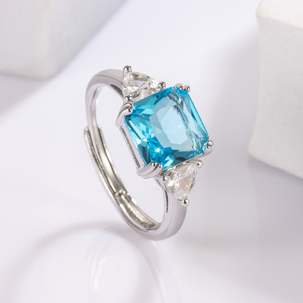 Cross-Border E-Commerce New Hand Jewelry Live Broadcast Hot Selling Heart Four-Claw Square Simple Fashionable Elegant Live Mouth Ring