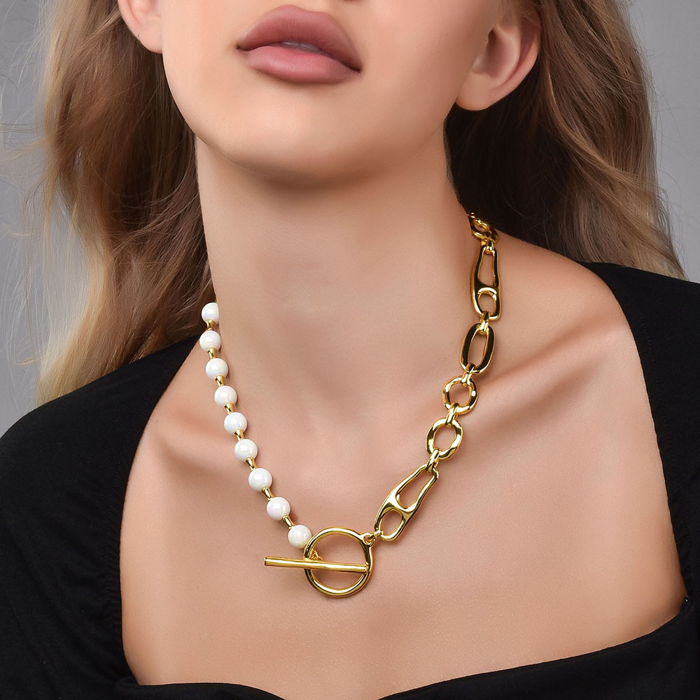 European and American Cross-Border Spanish Best-Selling Pearl Geometric Splicing Necklace, Simple and Elegant Accessories, Versatile for Daily Use