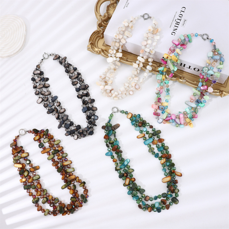Multi-Layered Shell Crystal Beaded American Necklace European and American Fashion Stylish Feminine Bohemian Style Necklace