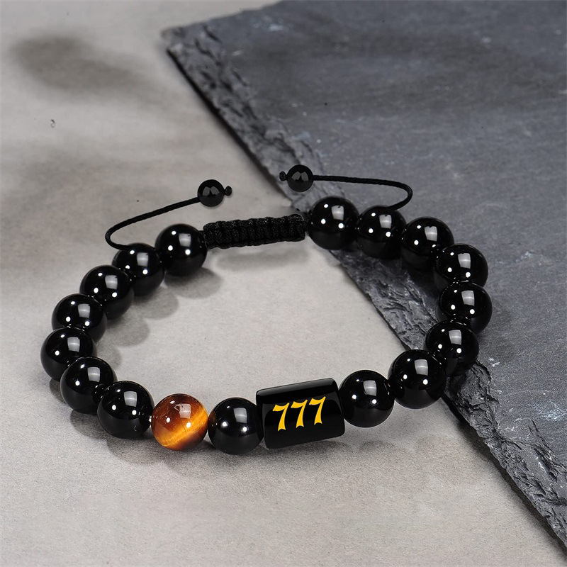 2023 cross-border new 10mm obsidian bead bracelet fashion digital 000-999 natural stone bracelet wholesale