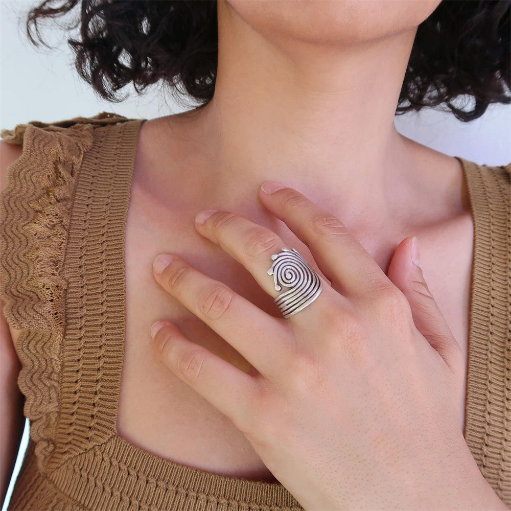 European and American Hot-selling Ethnic Tribal Totem Spiral Distinctive Ring Classic Hip-hop Creative Exotic Ring for Women