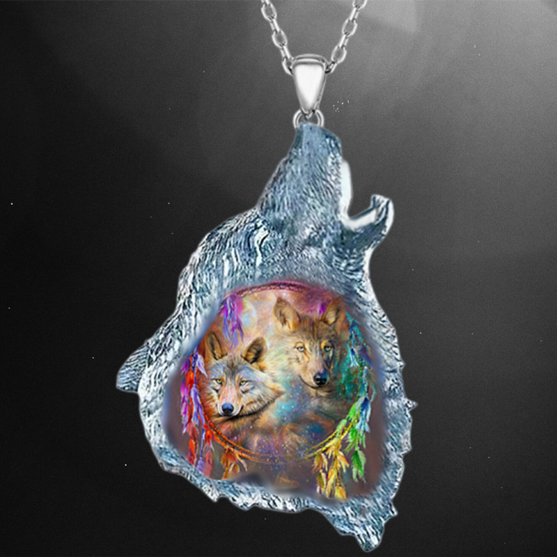 Cross-border temu Export Jewelry Tribal Wolf Totem Painted Domineering Wolf Head Pendant Street Trendy Men's Halloween Necklace