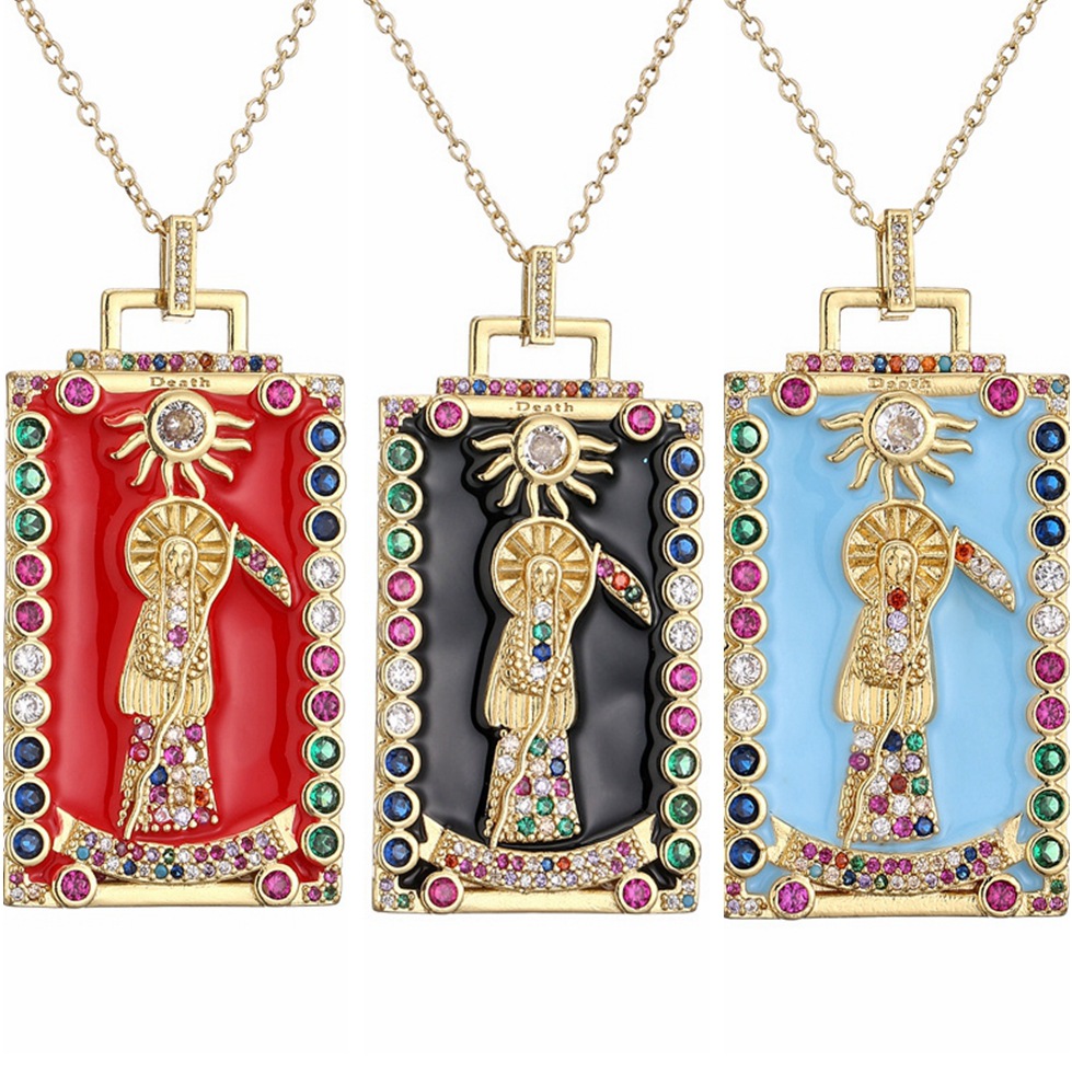 European and American personalized oil painting drop oil pendant necklace copper micro-inlaid tribe Sun goddess square pendant necklace