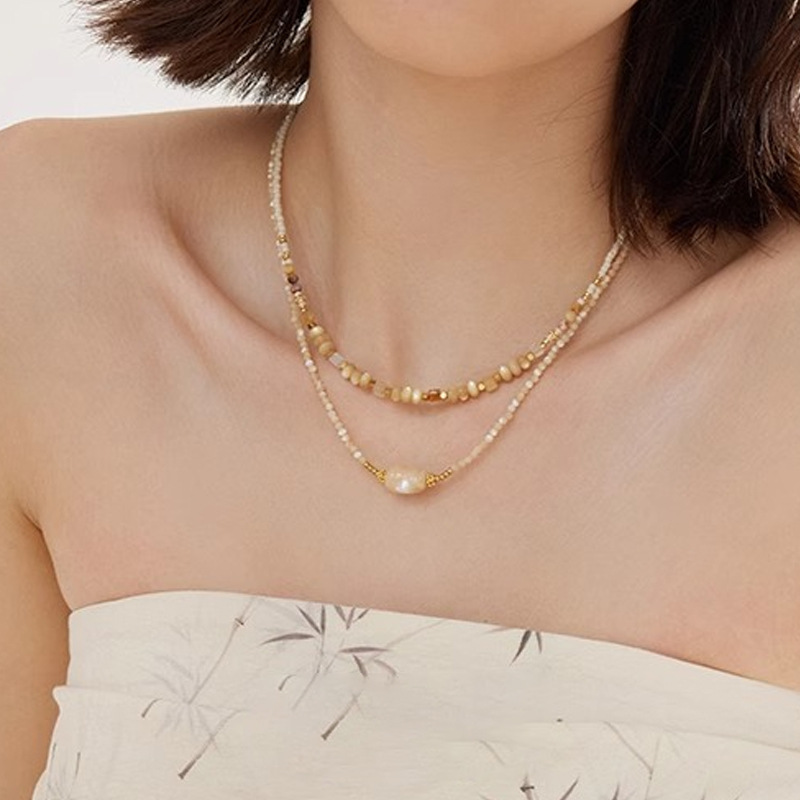 Shahai Tribe New Chinese Style Natural Stone High-grade Retro Niche Design Beaded Stacked Necklace