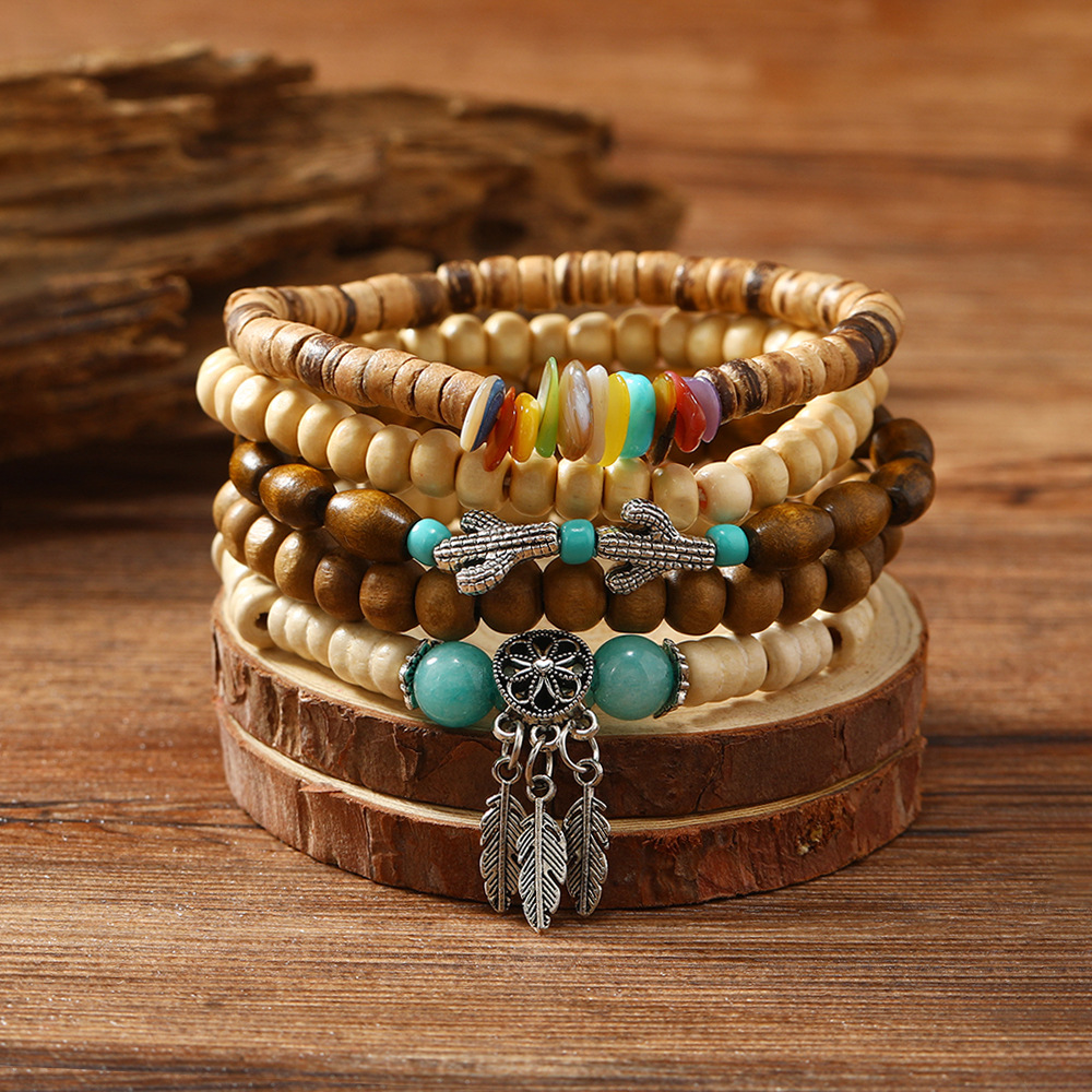 Amazon European and American cross-border retro shell dream catcher cactus multi-piece wooden beads color gravel bracelet wooden beads