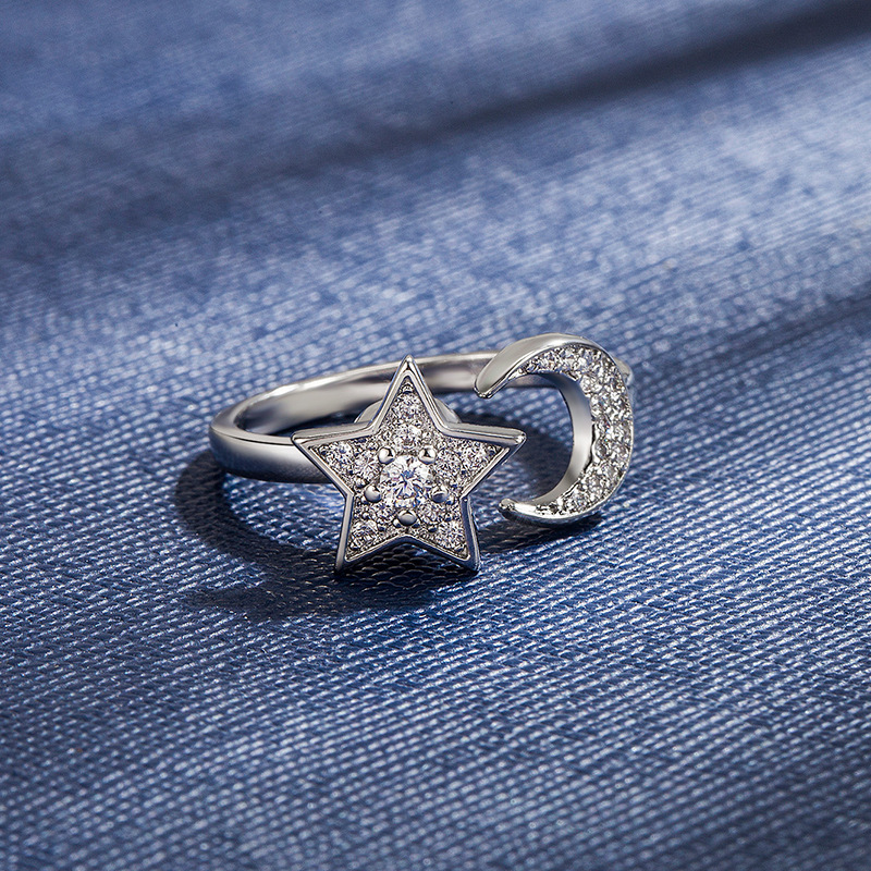 Traditional Craftsmanship Star and Moon Ring for Women 2024 Rotating New Trendy Timeless Live-Stream Jewelry