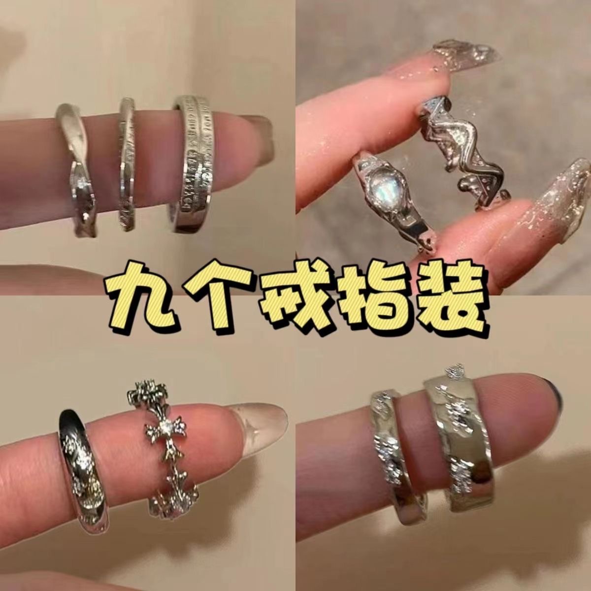 Nine-Ring Set Minimalist Style Rings for Women Ins Niche Design Cool Style Plain Band Rings