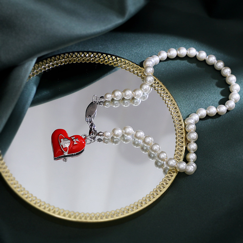 European and American cross-border new Pearl love Saturn pendant necklace women's fashion retro painted temperament niche jewelry