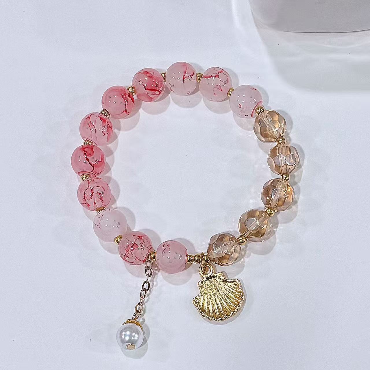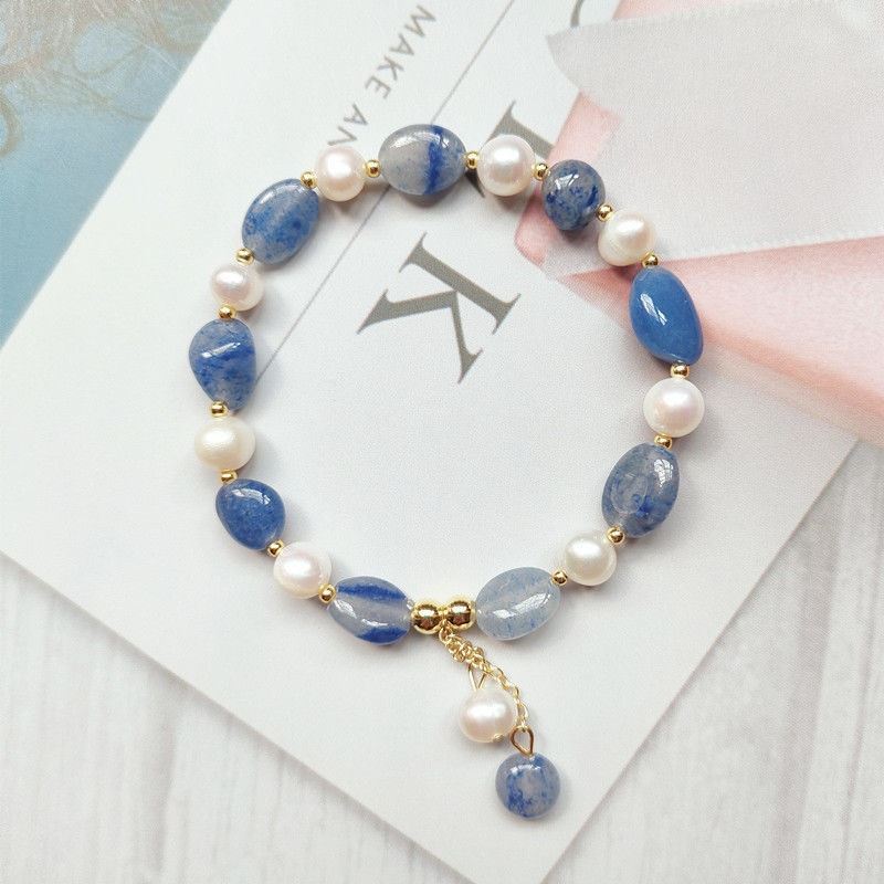 Moonlight moon shadow ~ natural pink crystal aquamarine cat eye stone fritillary moon beaded bracelet girl girlfriends bracelet