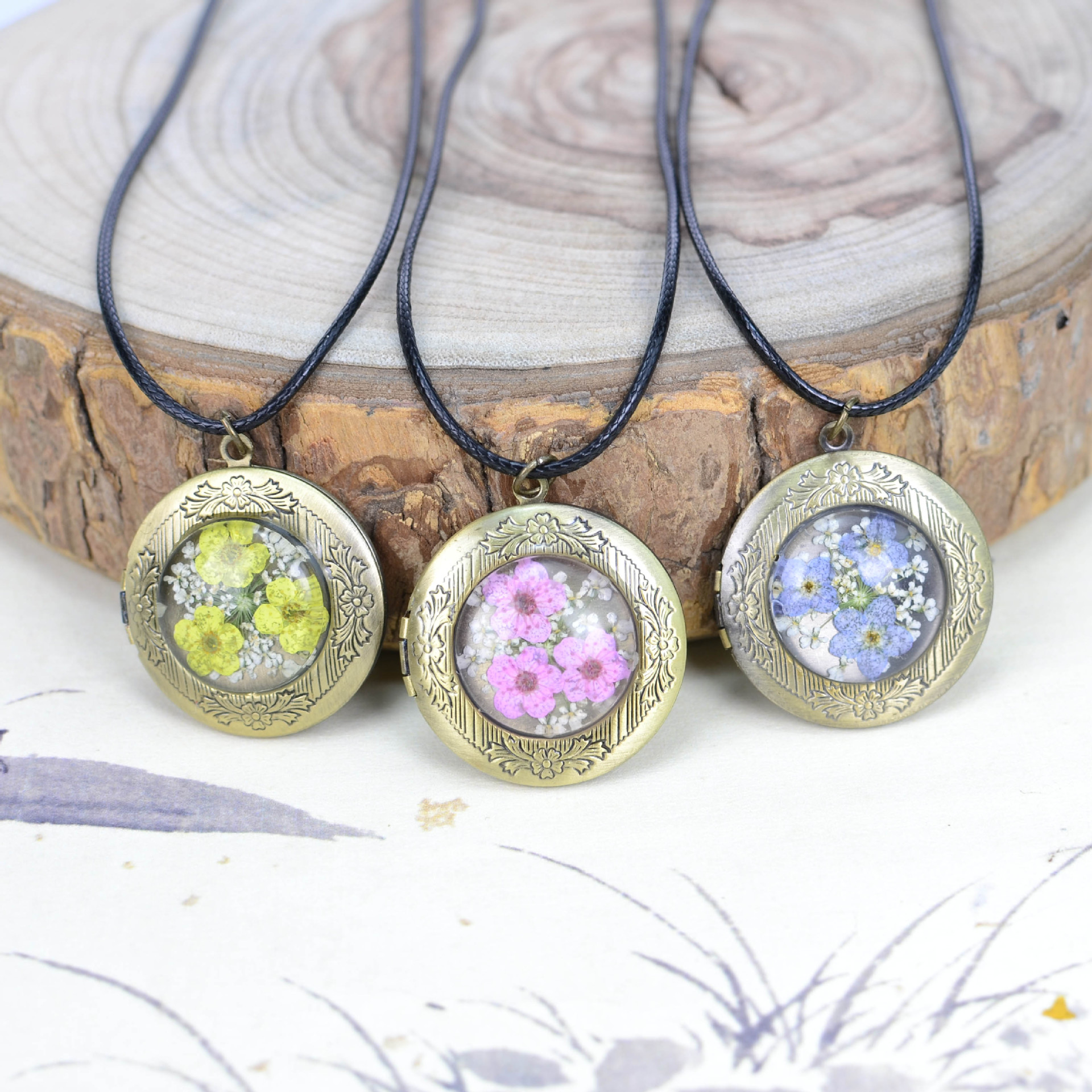Factory Direct supply Time Gem dried flower photo box necklace pendant vintage sweater chain cross-border hot sale Amazon hot sale