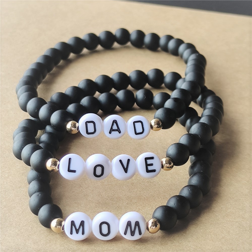 Jewelry 6mm Black Frosted Stone Rice Beads Letter Mama Mother's Day Father's Day Gift Beaded Bracelet Handmade