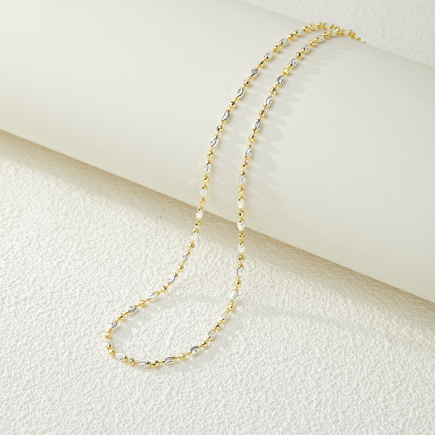 Italian S925 Silver 3.0 Moon Curved Beads Laser Beads Two-Color Necklace