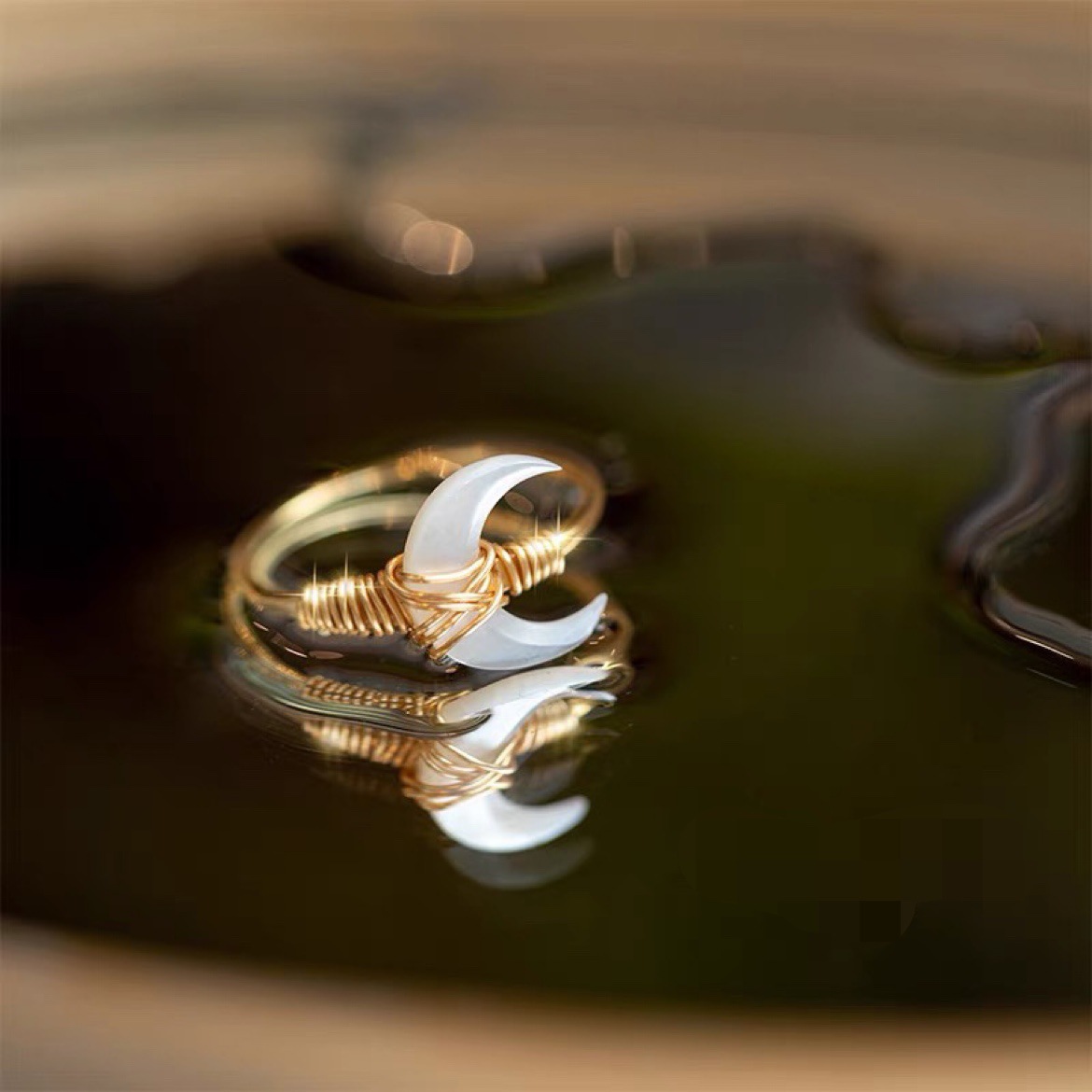 Canglan Formula Bone Oran Same Style Fritillaria Moon Ring Light Luxury Deep and Deep Jade Ring Moon Zun Same Style Design Ring