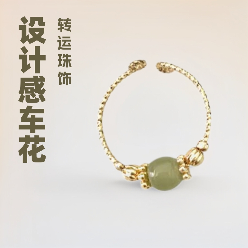 Highland barley Hetian Jade car flower lucky beads ring female design sense niche light luxury Chinese retro Open jewelry wholesale