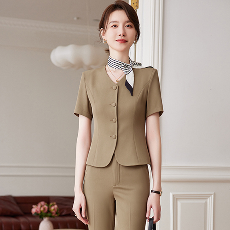 Brown suit suit women's summer jewelry shop work clothes temperament business wear formal wear beauty salon front desk work wear
