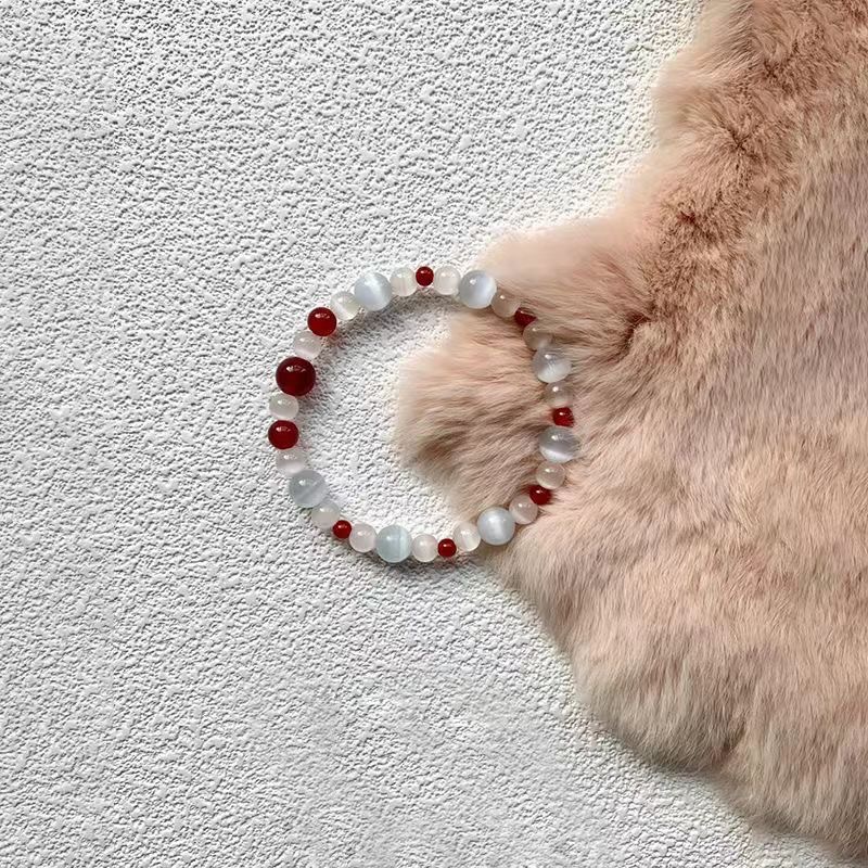 "Red Makeup for You" New Chinese Style Opal Beaded Bracelet Retro Exquisite White Student Girlfriend Bracelet for Women