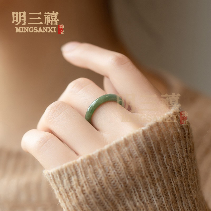 Ha Green Plum Green Tea Ring Fine Jade Ring Girl Ring Marrow Cold Style Student Girlfriend Gift Natural Jadeite