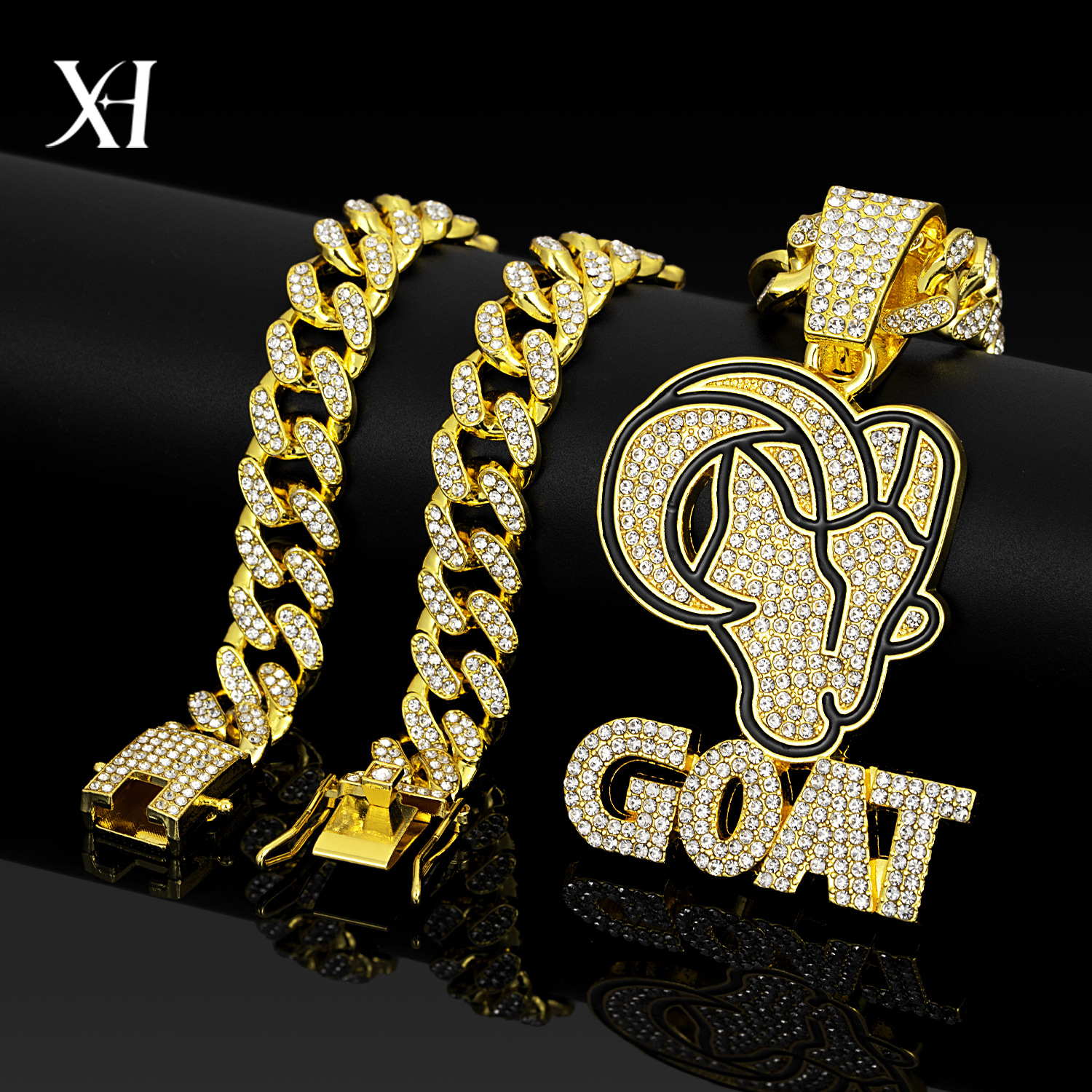 Cross-Border Rap Hip-Hop Ram Goat Goat Diamond Alloy Necklace Pendant European and American Cuban Chain Temu Hot Sale