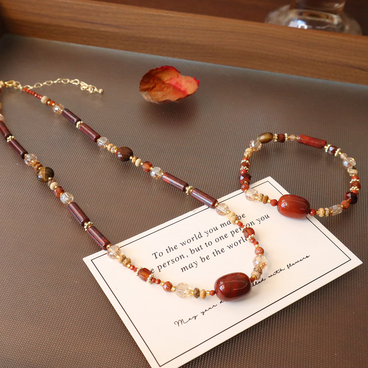 Natural Stone Necklace Red Stone Accessible Luxury Niche Beaded Retro High-End Autumn and Winter Sweater Chain Clavicle Chain Women's Bracelet