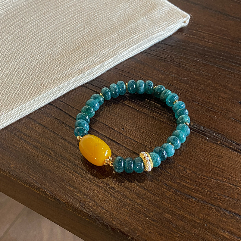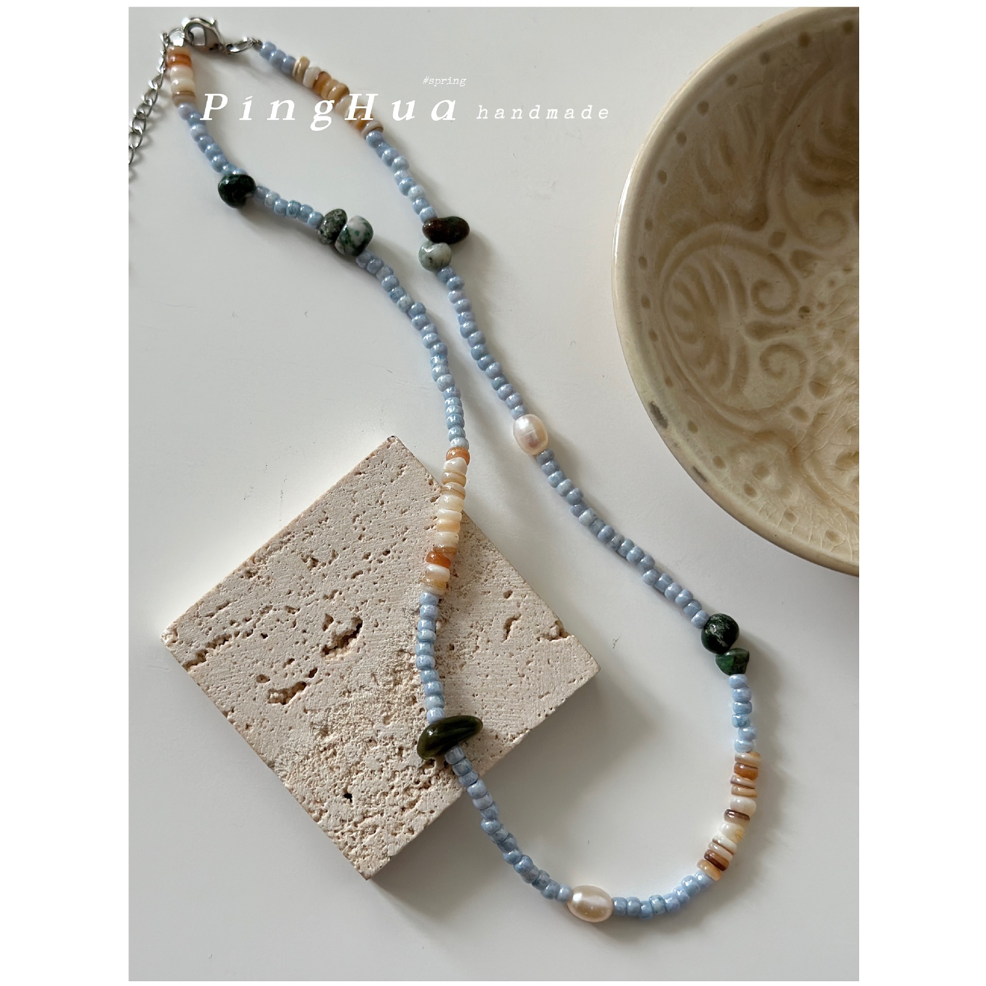 2025 European and American Cross-border French Light Luxury Style Ins Simple Blue Crystal Natural Stone Handmade Beaded Necklace for Women