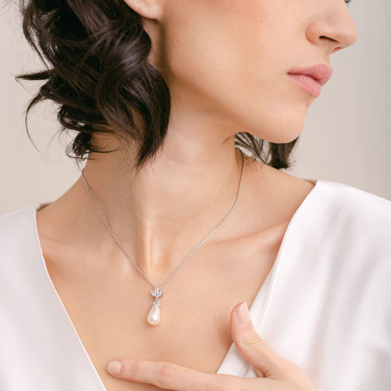 Cross-Border Hot Selling Leaf Zircon Necklace Wedding Jewelry Accessible Luxury Simple Pearl Pendant Clavicle Chain Necklace