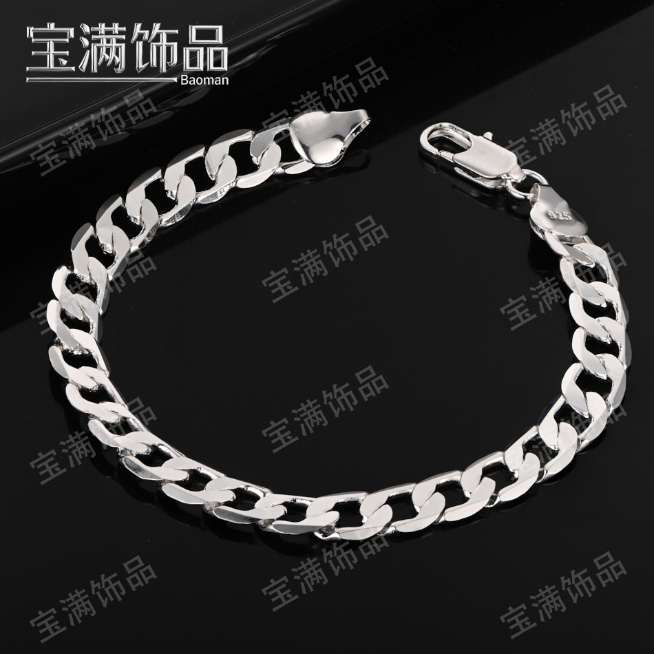 Cross-Border Popular Wholesale 925 Silver Plated 4Mm-12Mm Cuban Chain Bracelet Jewelry One-To-One Bracelet Silver Jewelry Dropshipping