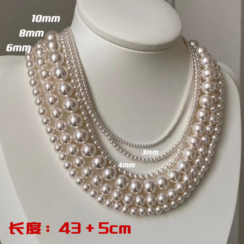 Shijia pearl necklace 4-10mm glass beads elegant light luxury vintage sweater chain round and flawless niche design