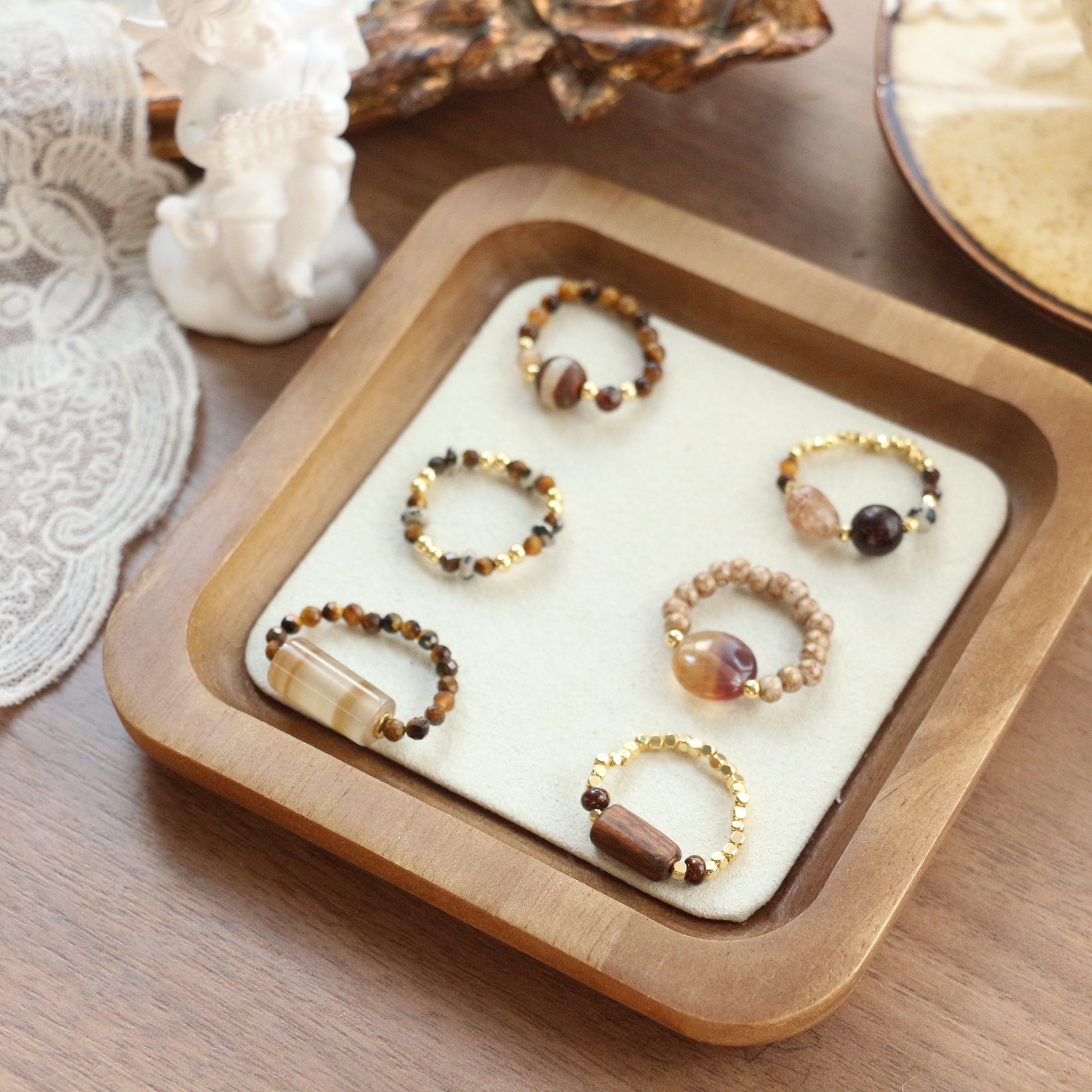 Surprise Style, Decadent Style, Niche Agate Tiger Eye Stone Wood Bead Natural Stone Ring Handmade Finger Ring Beaded Ring