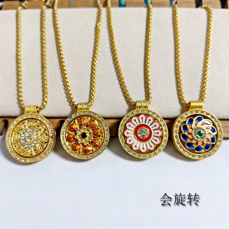 Rotatable Eight Treasures Compass Red and White Diamond-Inlaid Rose Sweater Necklace Tiktok Live Cross-Border Amazon Necklace Accessories