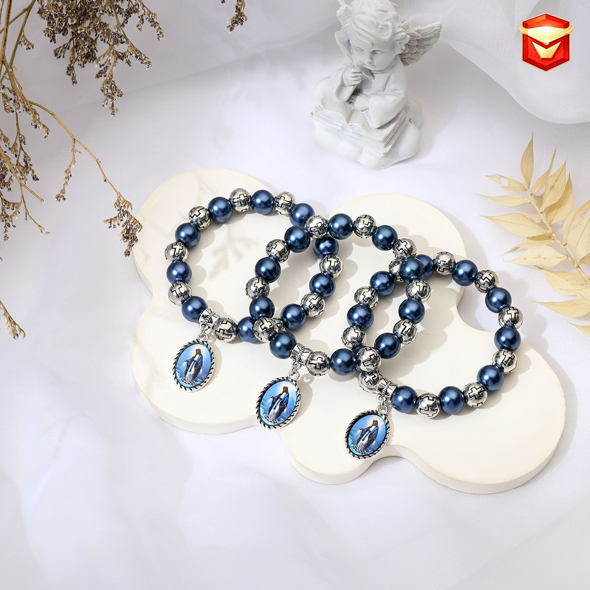 Amazon Cross Pendant Rosary Necklace Bracelet Royal Blue Pearl Beaded Men's and Women's Bracelet Bracelet
